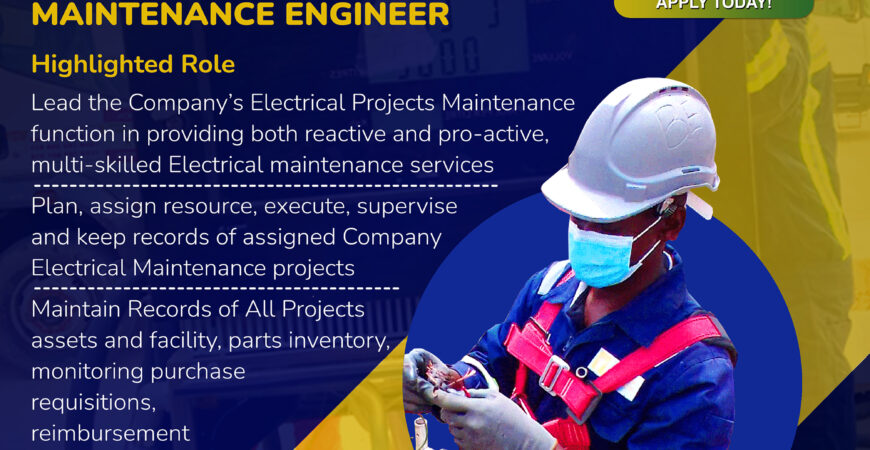 - MUST have at least 7 Years’ experience in both INSTALLATION, SERVICING, AND MAINTENANCE OF ELECTRICAL SYSTEMS AMONG OTHER ELECTRICAL ENGINEERING tasks as well.