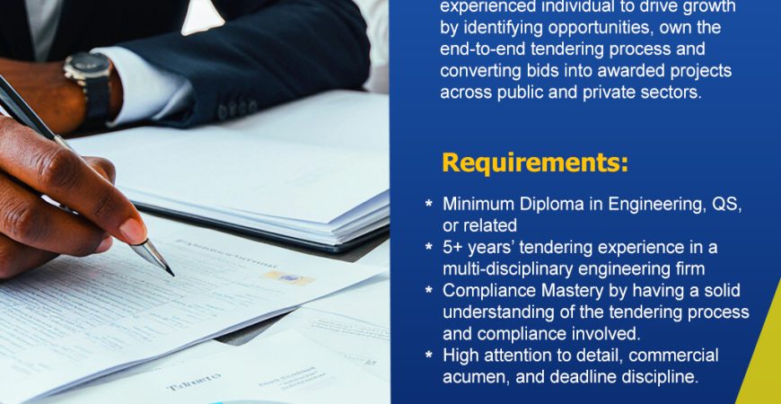- 5+ years’ tendering experience in a multi-disciplinary engineering firm